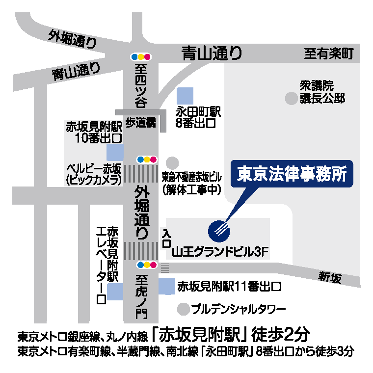 永田町駅ご利用の場合は出口まで距離がありますのでお時間に余裕をもってお越しください(半蔵門線ホームを経由します)。